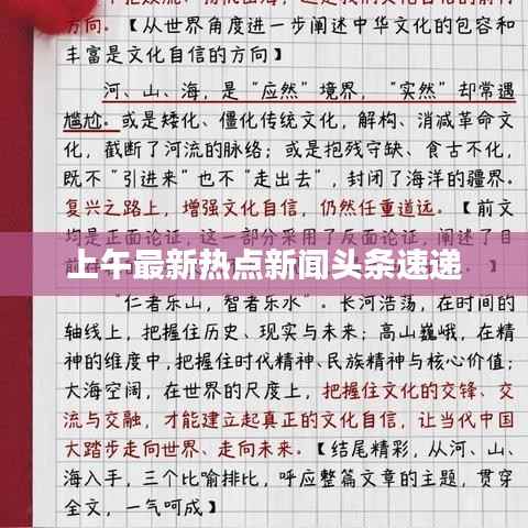 今天上午的新闻头条涵盖了国内外时事、社会热点、科技发展、娱乐体育等多个领域,这些新闻反映了全球范围内的各种动态和变化,也让我们更加了解世界的发展,希望大家关注新闻,关注时事,共同为美好的未来努力。