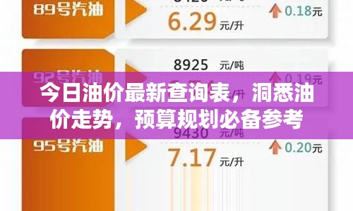 随着汽车普及和经济发展的加速,油价问题日益受到人们的关注,对于广大车主而言,掌握最新油价信息,做好预算规划,显得尤为重要,本文将为您呈现今日油价最新查询表,助您洞悉油价动态,合理安排个人财务。