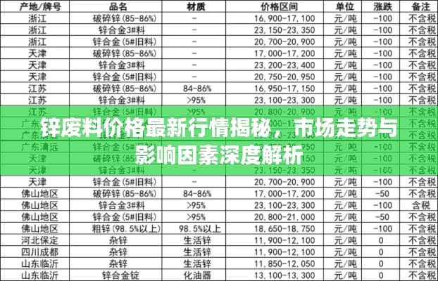 随着全球经济的不断发展和工业领域的持续繁荣,锌废料的价格成为了人们关注的焦点,本文将对今日锌废料价格的最新行情、市场走势以及影响因素进行深入分析。